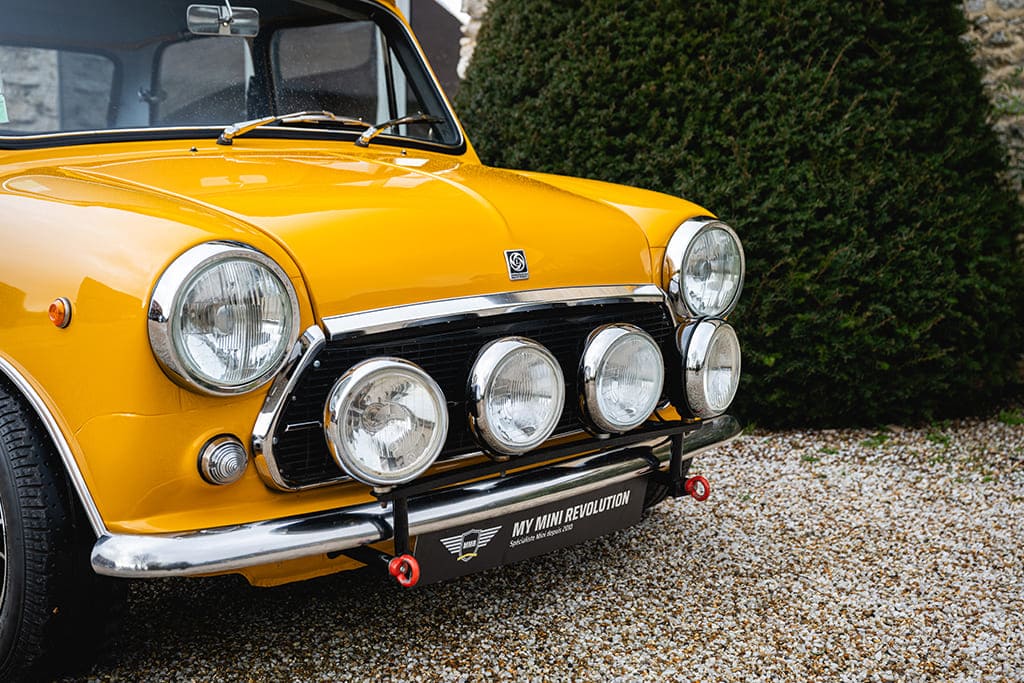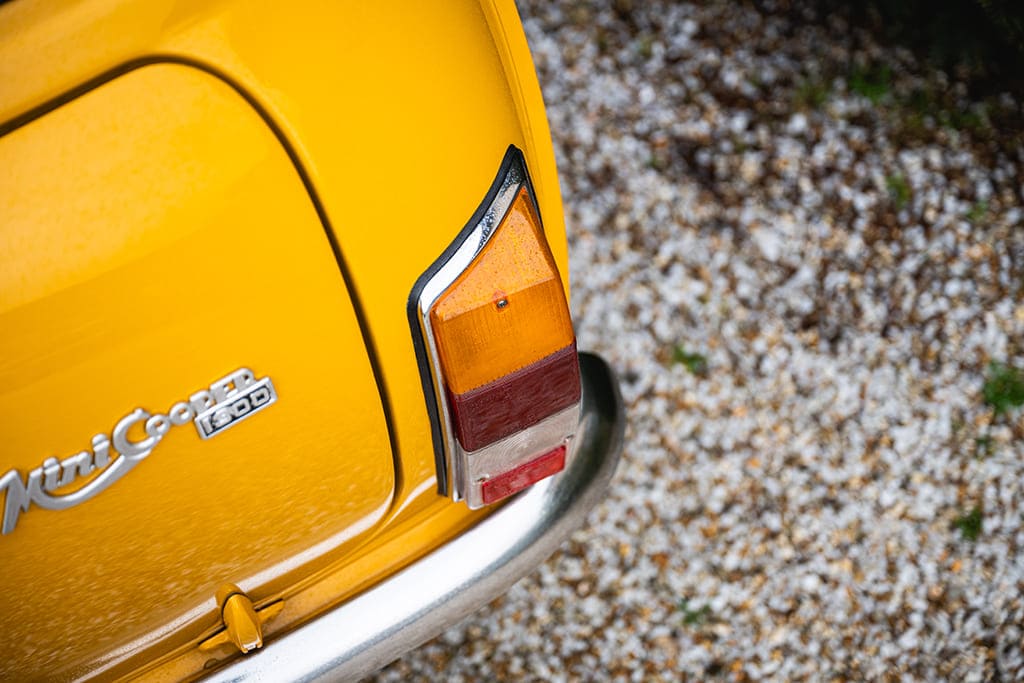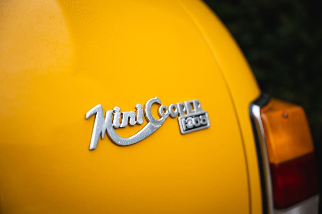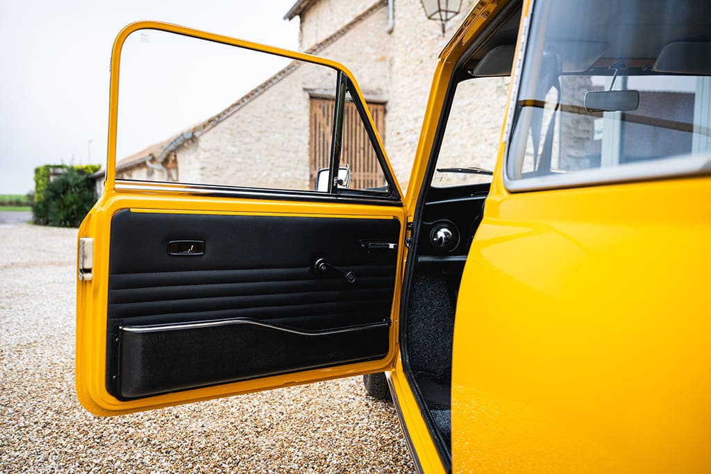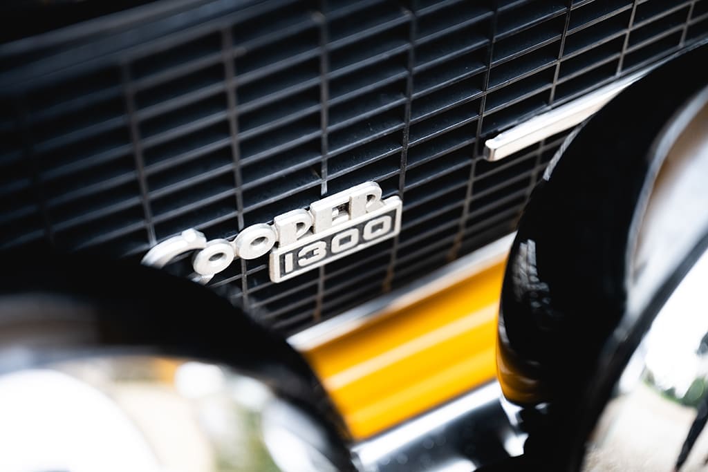 Mini Cooper 1300 Innocenti, Amarillo Italia (Giallo Ocra), 1974, usado, a la venta en nuestra sala de exposición. Pieza de colección excepcional, parte de la colección Mini Classics. My Mini Revolution, París, Houdan Bazainville. Compra y vende.
