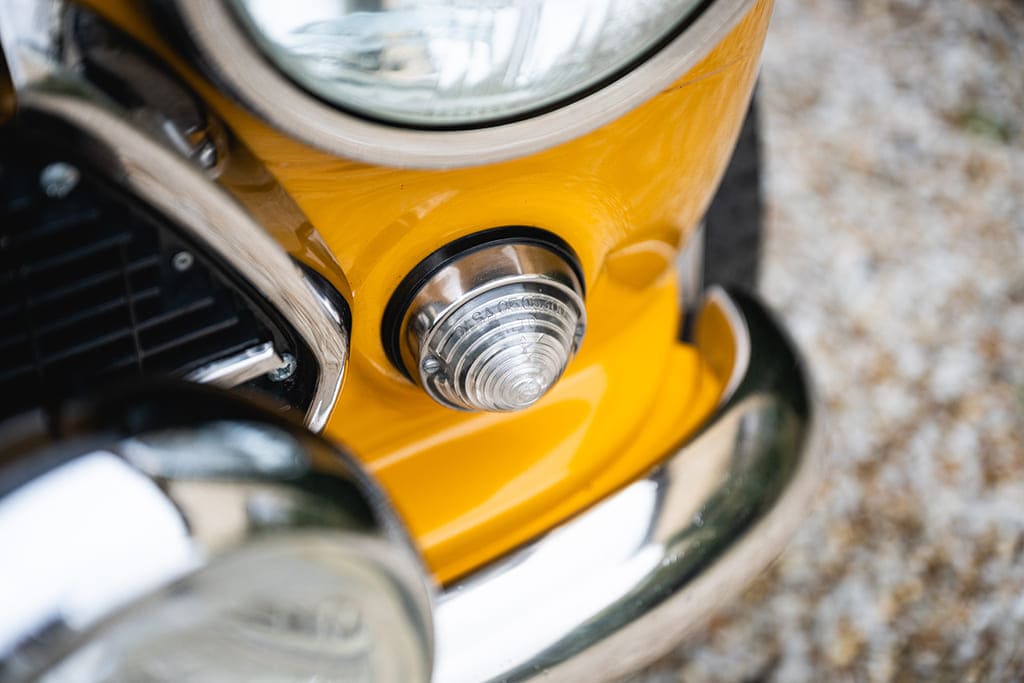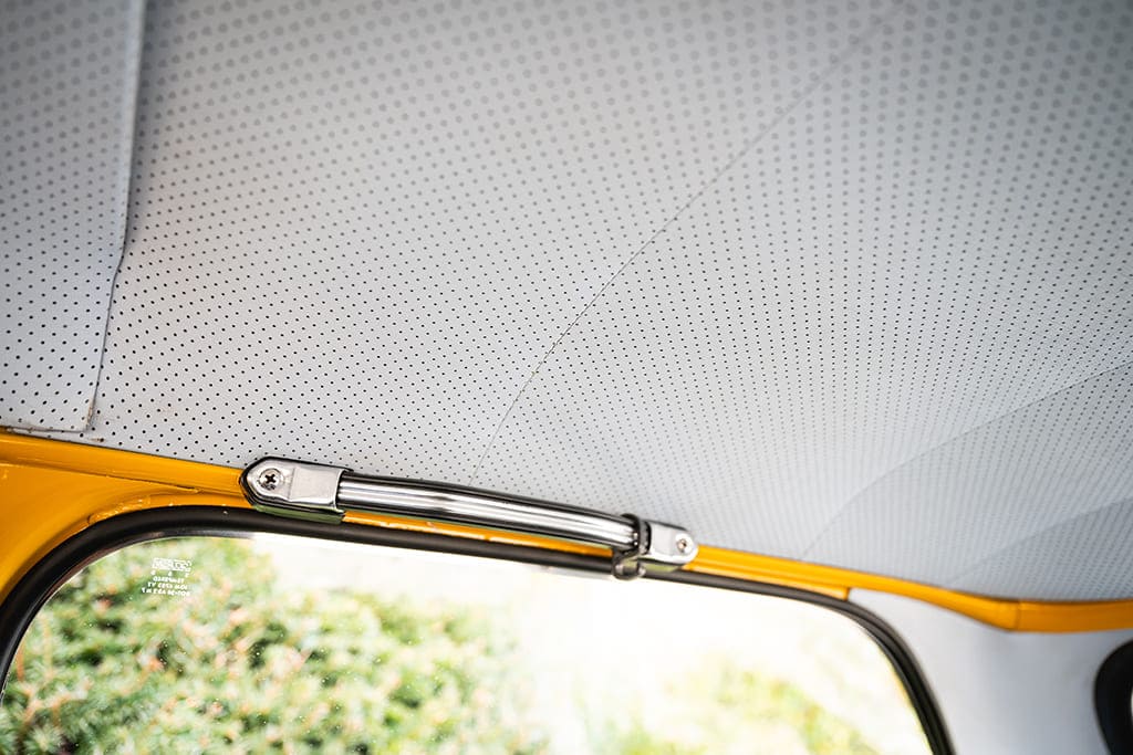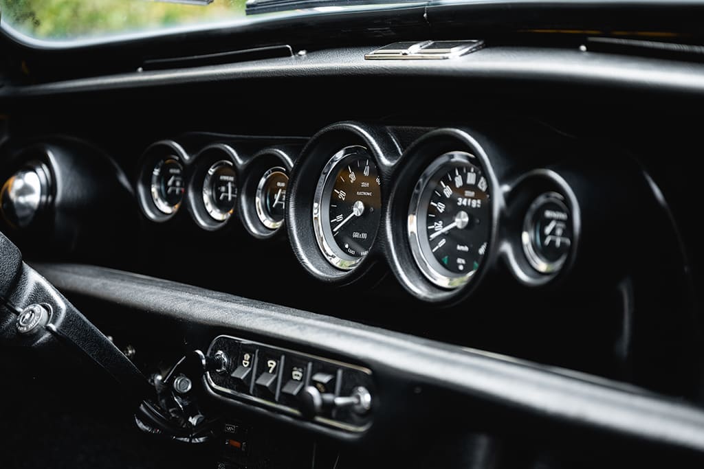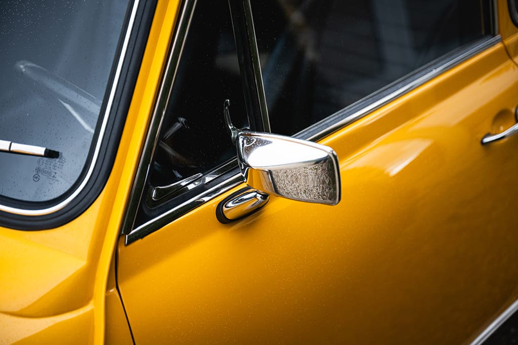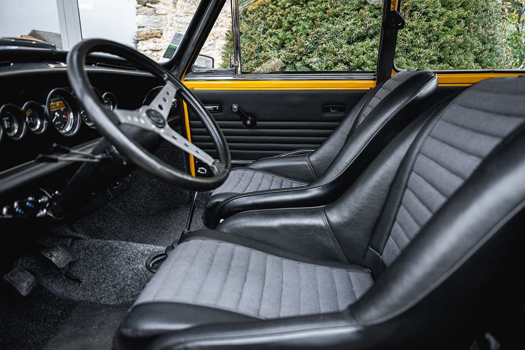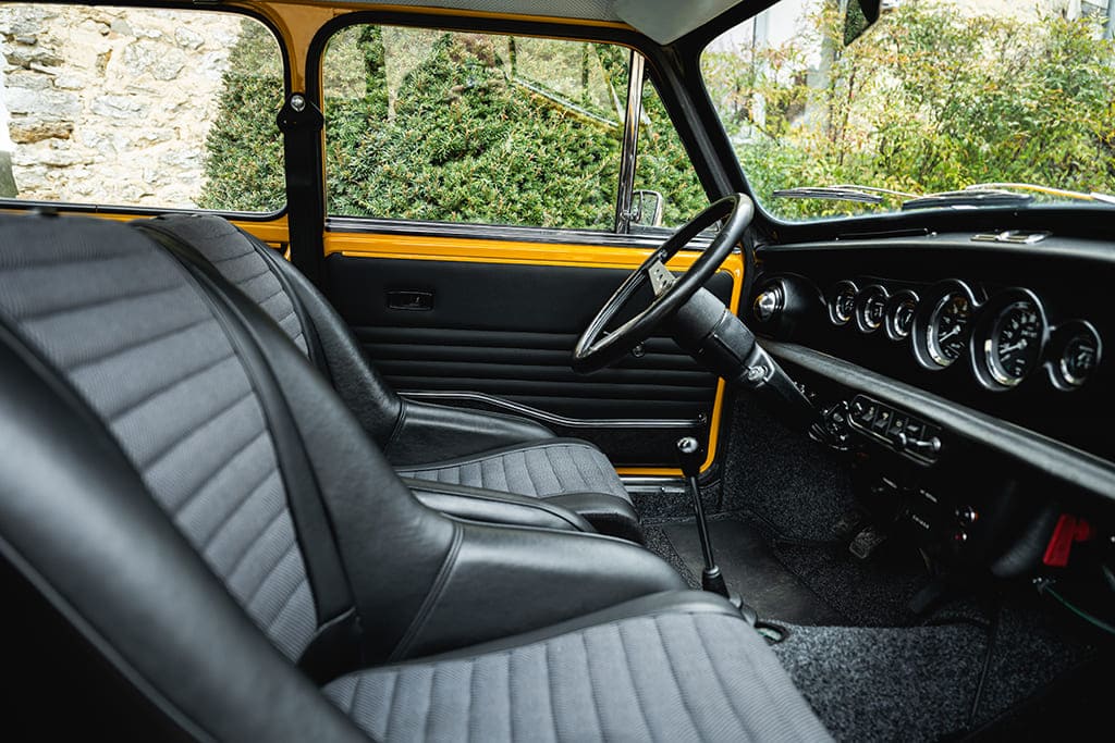 Este ejemplar es un modelo francés de exportación y, sobre todo, un coche construido exactamente como nos gusta: restaurado desde cero, con una meticulosa atención al detalle y sin atajos. La pintura Giallo Ocra, un color característico de Innocenti, es extremadamente rara y realza con belleza las líneas del coche: radiante, elegante e inconfundible.